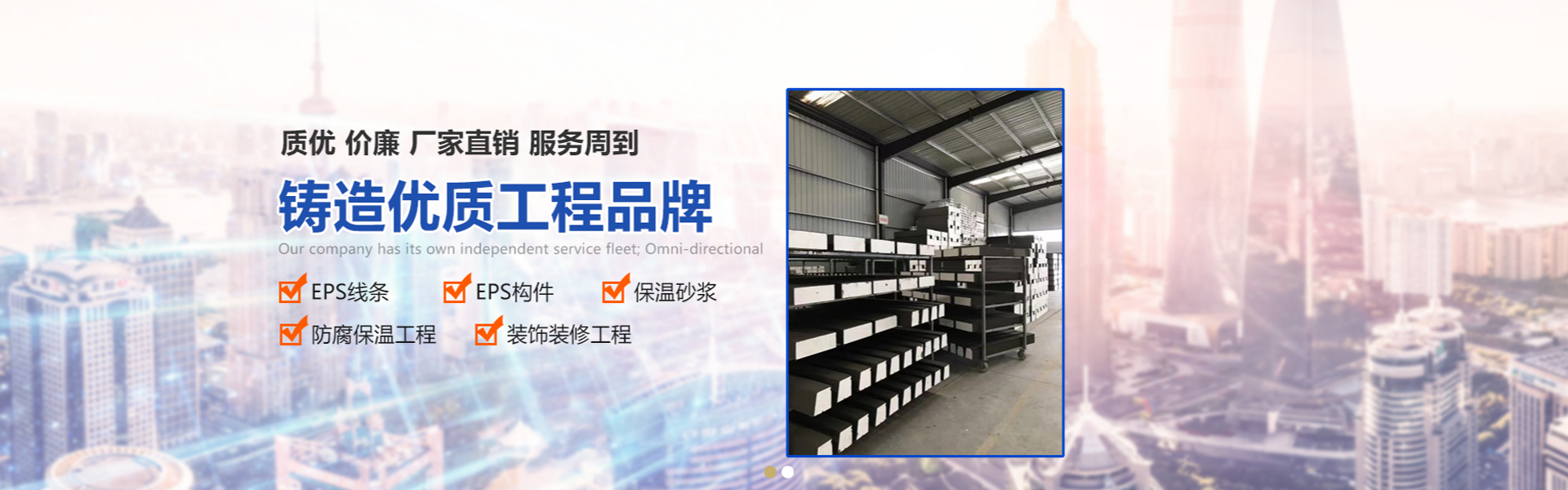 是一家專業(yè)生產(chǎn)各種型號的EPS線條、GRC線條、保溫砂漿,防腐保溫工程和裝飾裝修工程施工為主的高科技民營企業(yè),專業(yè)致力于外墻保溫材料和外墻裝飾線條的生產(chǎn)和施工工程;